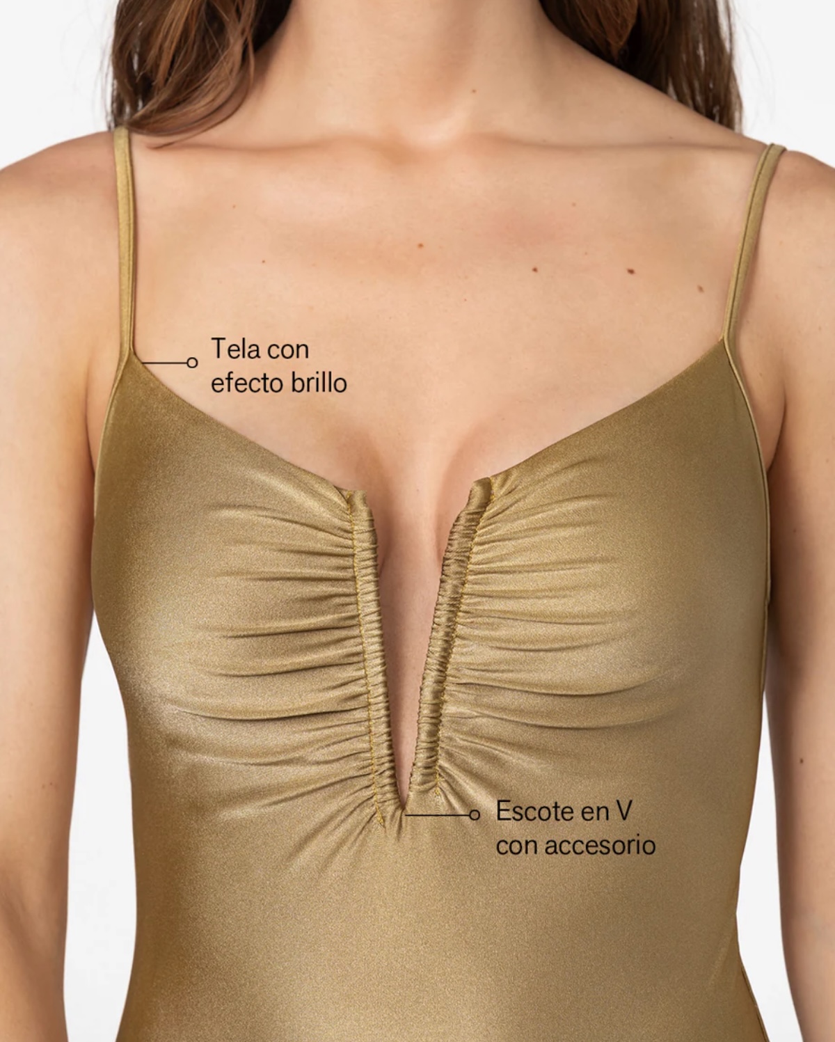 El bañador dorado de Leonisa destaca por su diseño elegante, femenino y muy sofisticado. Su tono dorado satinado aporta mucha luz a la piel y crea un efecto muy favorecedor, especialmente en verano. Además, su acabado brillante convierte esta prenda en una opción perfecta para quienes buscan un bañador diferente y con mucha personalidad.