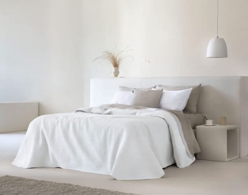 Además, este tipo de relieve añade profundidad visual y un acabado moderno. Por ello, encaja fácilmente en dormitorios contemporáneos, nórdicos o minimalistas. Al mismo tiempo, su diseño ligero ayuda a mantener una estética fresca y ordenada, ideal para las temporadas más cálidas.