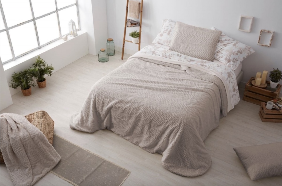 Cada detalle está pensado para ofrecer una sensación de bienestar absoluto. Su reverso en suave sherpa beigeproporciona un calor envolvente y constante, ideal para los días más fríos del invierno. Gracias a su estructura de tres capas contra el frío, este edredón ofrece un alto poder calorífico sin resultar pesado, manteniendo el equilibrio perfecto entre abrigo y ligereza.